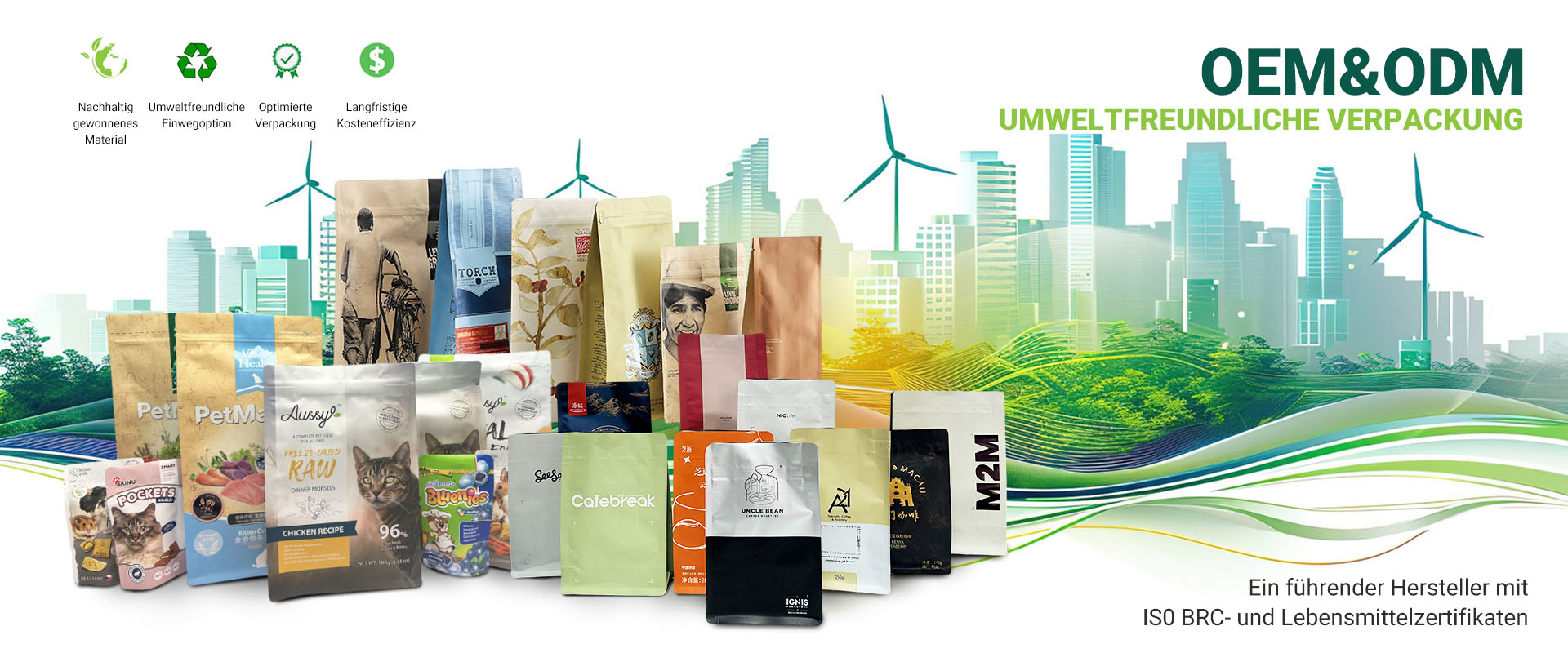 Wir bieten eine vollständige Palette von Verpackungslösungen für verschiedene Marktsegmente, wie Reißverschlussbeutel, flache Bodenbeutel, Stand-up-Beutel, Pappbeutel, Retortenbeutel, Vakuumbeutel, Faltenbeutel, Trichterbeutel, Gesichtsmaskenbeutel, Haustierfutterbeutel, Kosmetikbeutel, Rollfolie, Kaffeebeutel, Tageskosmetikbeutel, Aluminiumfolienbeutel usw.